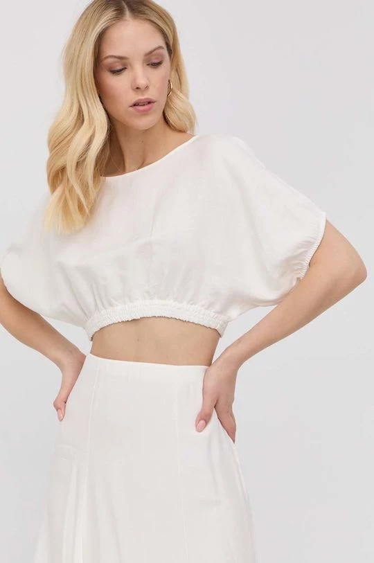 Μπλουζα από τη συλλογή Patrizia Pepe. Μοντέλο από από λείο ύφασμα. Παρέχει στρογγυλό ντεκολτέ.