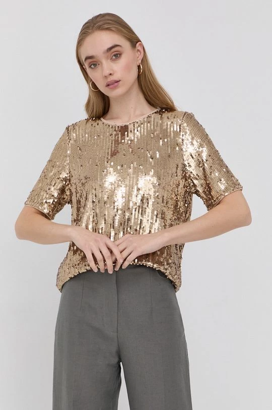 Μπλουζα από τη συλλογή Patrizia Pepe. Μοντέλο από ύφασμα με πούλιες. Παρέχει στρογγυλό ντεκολτέ.